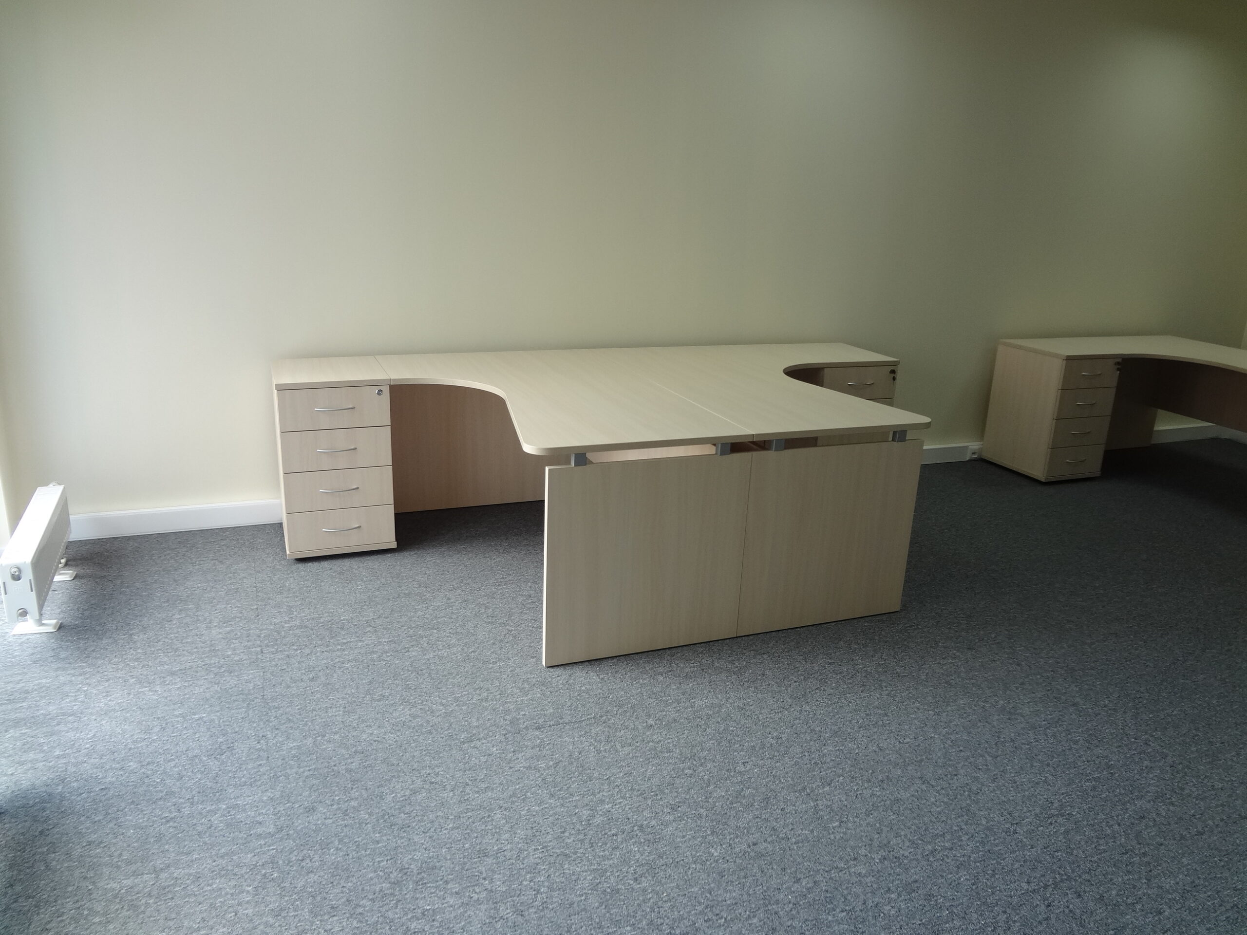 Kampinis klasikinis darbo stalas LMDP plokstes kojomis, metaliniais laikikliais pakeltu stalvirsiu. Itin tvirtas ir stabilus. 1600x1000x745H